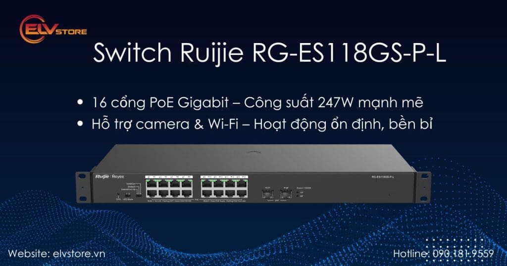 Đánh giá chi tiết Switch mạng PoE Ruijie RG-ES118GS-P-L – Giải pháp kết nối tối ưu cho hệ thống camera và Wi-Fi