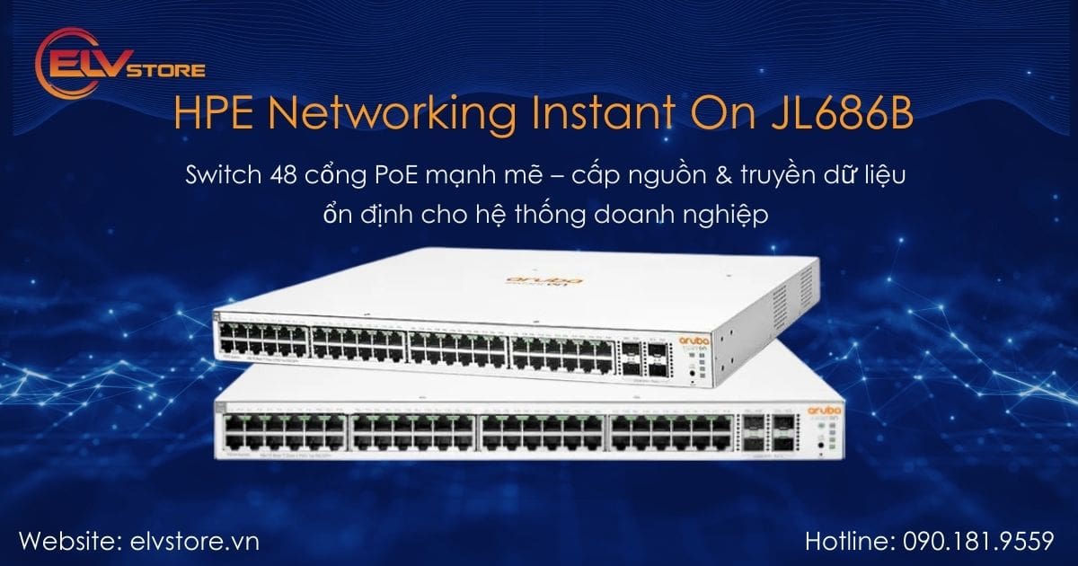 Trong bối cảnh hạ tầng mạng ngày càng phức tạp với sự kết hợp giữa camera IP, điểm phát Wi-Fi, điện thoại VoIP và nhiều thiết bị IoT, việc lựa chọn một switch đủ mạnh, cấp nguồn ổn định và dễ quản lý là yếu tố sống còn cho hiệu suất vận hành. HPE Networking Instant On Switch 48P Gigabit CL4 PoE+ 4P SFP 370W (JL686B) chính là một lựa chọn nổi bật, cân bằng giữa hiệu năng, độ bền và khả năng quản lý linh hoạt.