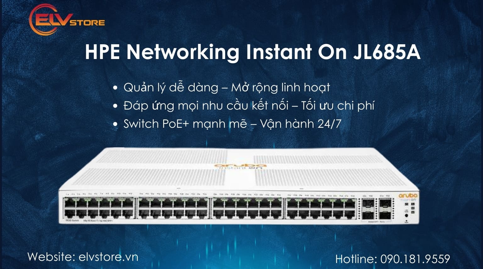 Ghi chú: Switch 48 cổng Gigabit JL685A nổi bật ở khả năng uplink tốc độ cao và nền tảng quản lý Cloud không cần license, thích hợp với SMB đang phát triển nhưng không muốn đầu tư quá nhiều vào phần cứng chuyên nghiệp.